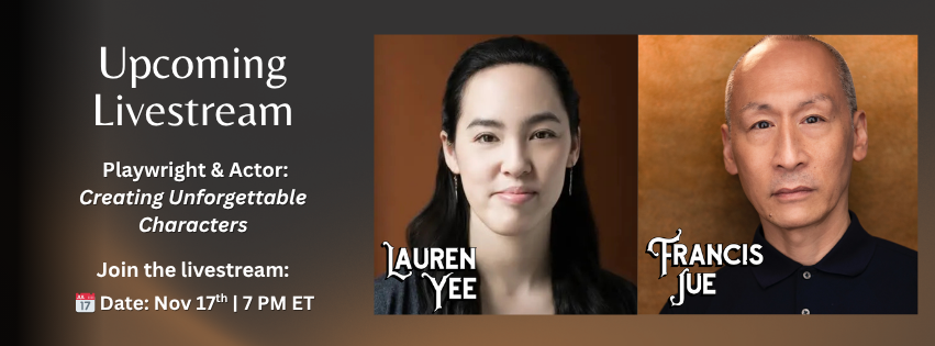 Join a live online conversation and Q&A each month with the featured Playwright and one of their favorite collaborators (a director, designer, actor) — for an inside peek into how their vision takes shape on the page, then is brought to life on stage.